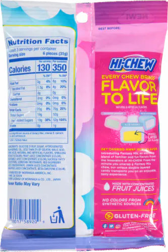 Hi-Chew Fantasy Mix brings together three dreamy, fan-favorite flavors — Rainbow Sherbet, Blue Hawaii, and Blue Raspberry. Each piece delivers that signature chewy, juicy burst Hi-Chew lovers can’t resist. Whether you’re looking to brighten up your candy stash, share with friends, or add a splash of fun to parties, this mix is a must-have for adventurous flavor seekers.